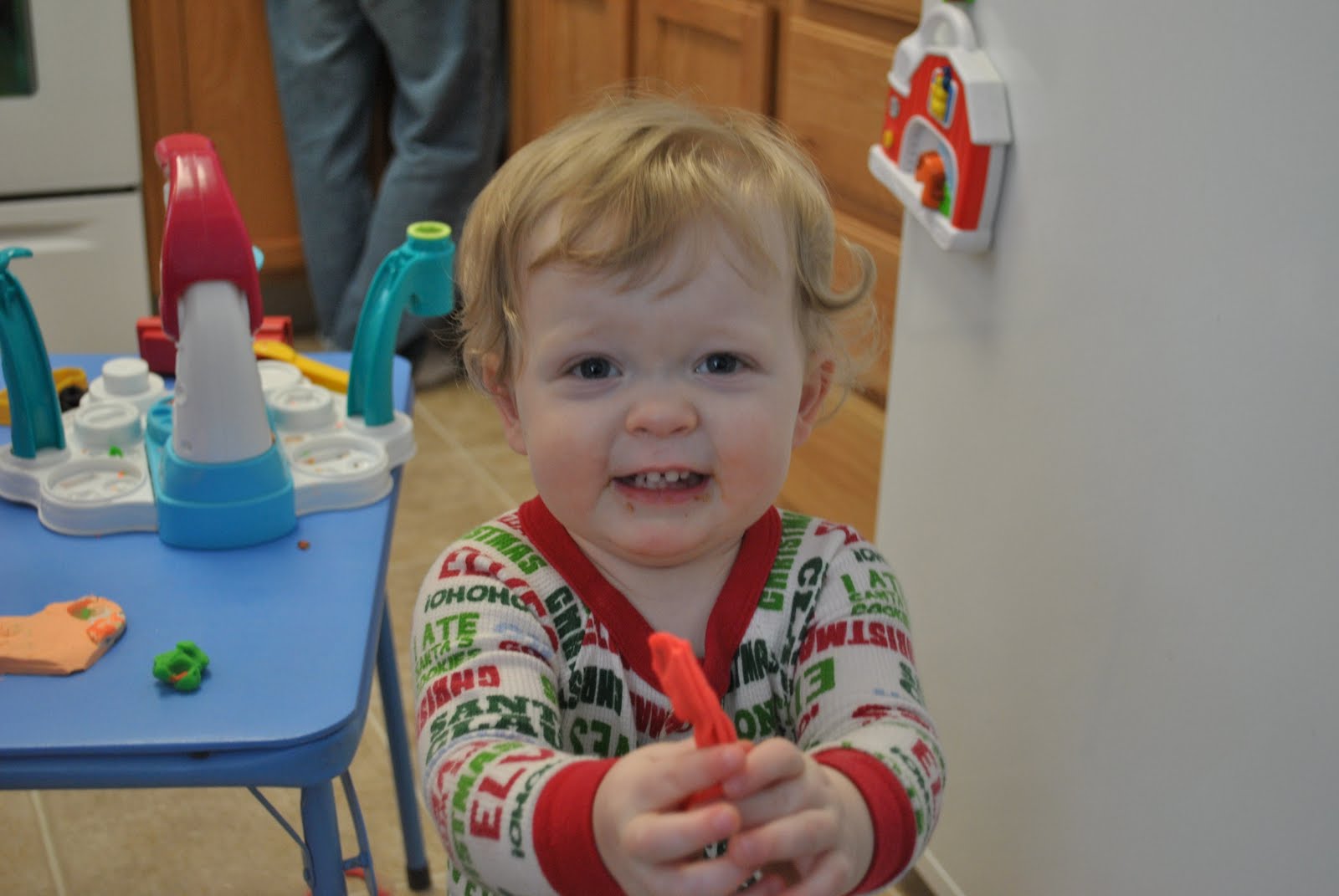 - One Saturday morning the twins slept in till 8:30 or so. Brian and I were snuggled in, enjoying the extra lazy time in bed, but Nolan wasn't having it. He declined snuggling with us and went off to play...or so I thought. He climbed on the counter, got himself a bowl, got into the cabinet, pulled out a new cereal box. Opened it. Taped the top because he ripped it opening it. Poured cereal into bowl. Poured milk into bowl. Cleaned up spilled milk. Carried bowl to table. Happily ate like the big, independant boy he is and proudly told us of his adventures when he was finished.